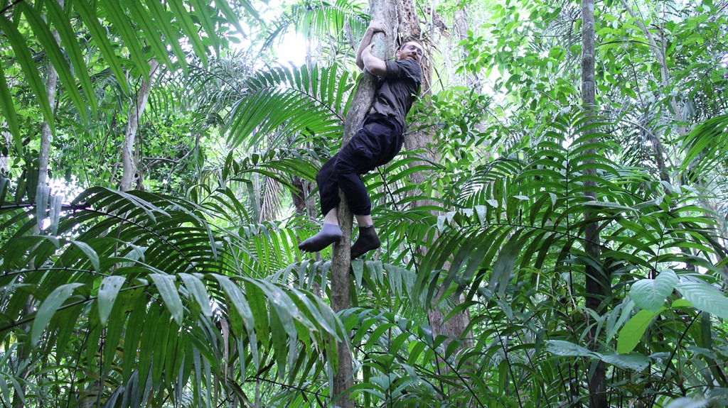 My goal with these performance art re-enactions was to expose my scientists to different modes of experiencing the strange worlds they encounter everyday in the jungle. Our perception and learning is not absolute but rather state based. The things we pay attention to and the way we comprehend these interactions are steered by our physical and mental states. The insects you notice while walking through a jungle may be different when walking through that same jungle naked and covered in jam.