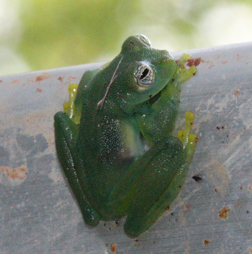 Barrett is very excited and makes us all food while we wait. The discussions are always fast and fun with him. Later in the evening I join Michelle from the bat group and Ashley, who will make making up part of the invertebrate testing team to test out some modded gopro cameras from Bill Wcislo. He had the cameras sent away to be modified into IR cameras for recording high-speed video of creatures moving around at night. In theory they were supposed to remove the normal infrared filter built into most cameras, and then add in a visible light filter. We were going to see if we could use it for recording the bats swooping down to catch the robotic frogs in the flight cage. On the way over, we found a huge, beautiful roach. It fluttered softly in the air and was easy to catch. Its outer wings were a stylistic transparent color.