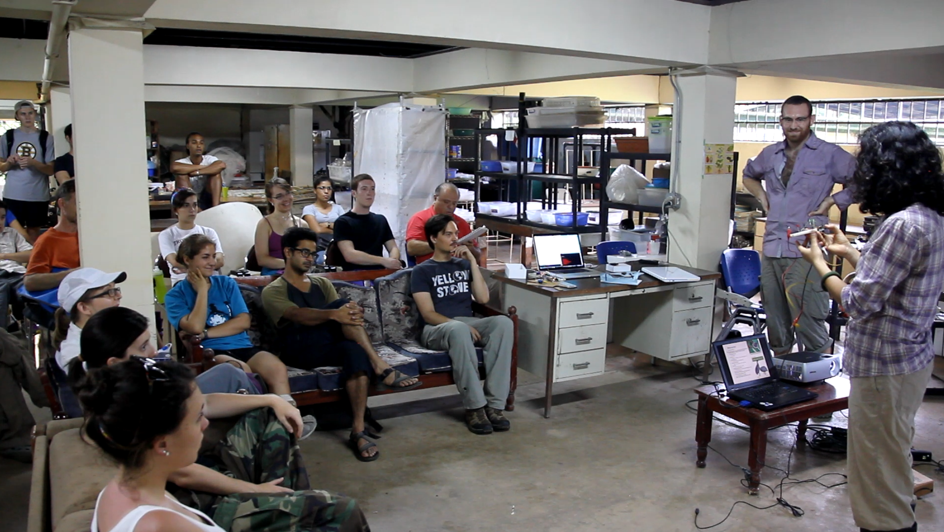Barrett Klein, the model-making wizard and insect insominator has arrived back in Gamboa. We have all been eagerly anticipating his return, as this will kick off a new interesting experiment: parallel sleep study between an invertebrate and a vertebrate. The vertebrate will most likely be a bat, since the bat lab is one half of the grant, but exactly what type of bat is still up for discussion. For the spineless participant, Barrett makes sure to have everyone think in very broad terms, before mentioning a couple of organisms with good potential for the experiment.