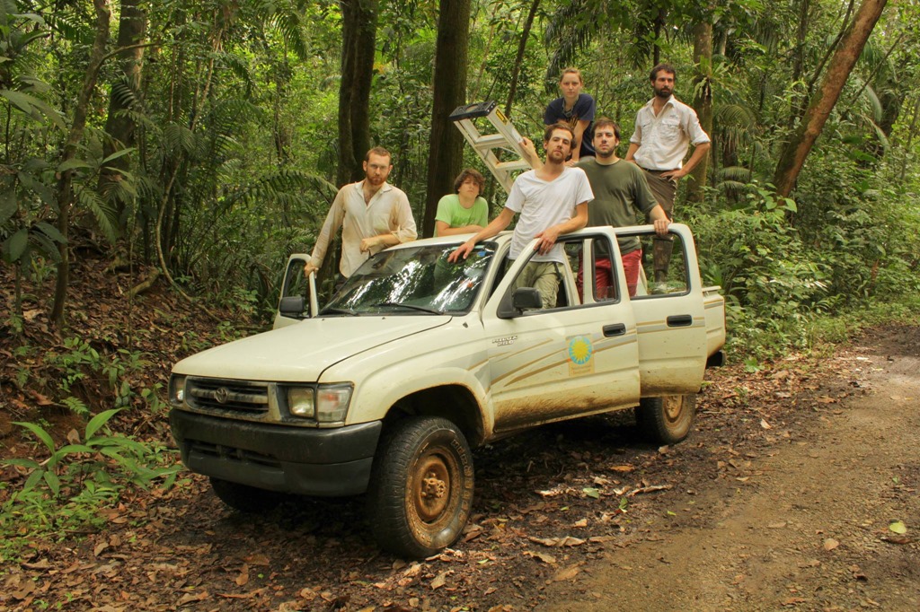 Field day with Peter and his Band. They came into town from St. Louis Saturday evening prepped for the Neon Party on the ridge. Today they are working with us as field assistants who happen to break out into the occasional jam. As I ride in the back of the truck, testing out living inside the new bio-survey method “Ladder on a Truck” with Evan strumming the guitar, I have the realization that this moxy adventure could be the premise for a children’s animated television show from the 70’s. Crazy truck of scientist-musicians rolls through forest, experimenting with ant-plants and taking time out for musical interludes.