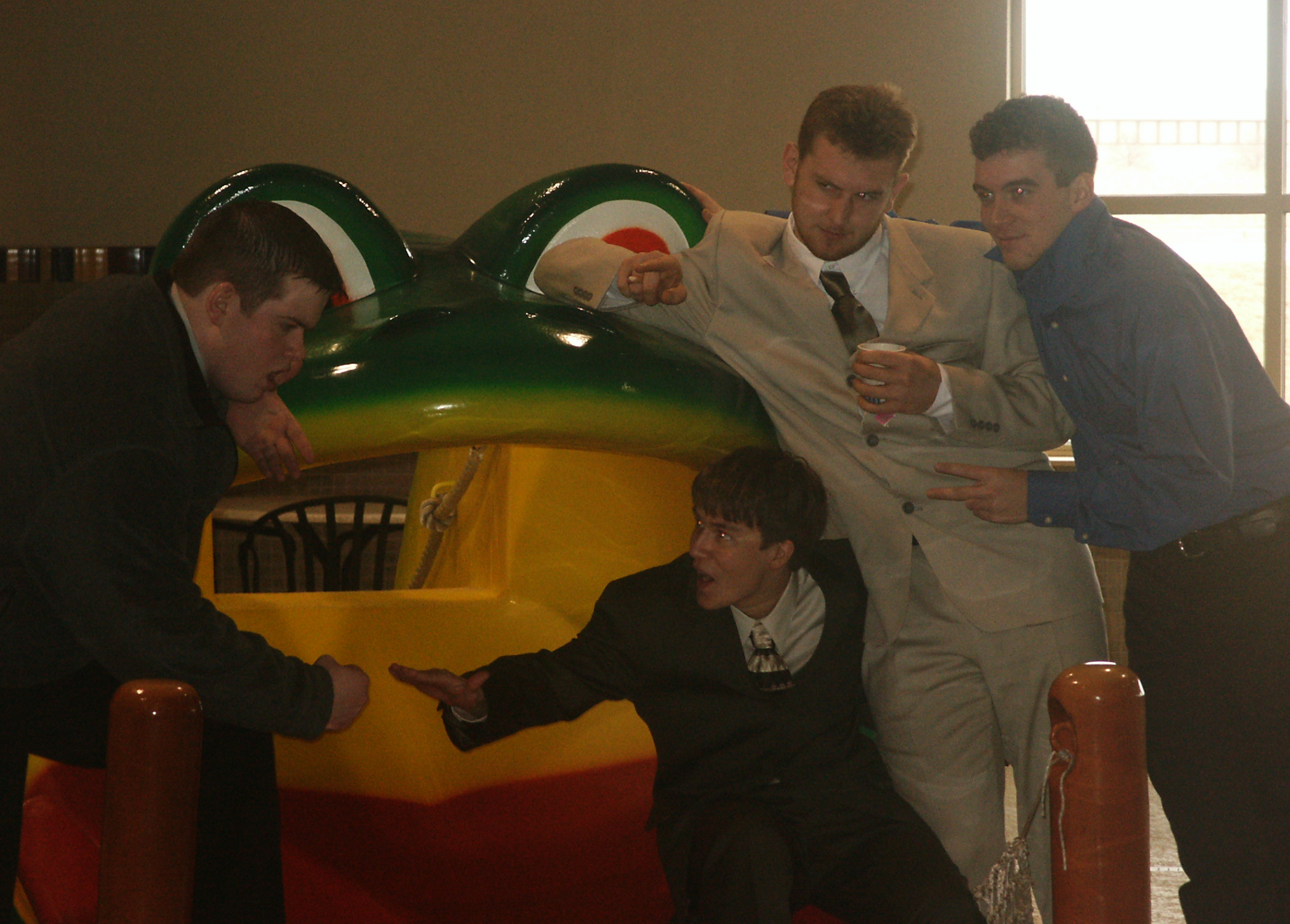 After exploring one factor thoroughly in experiments, such as the point of percussion in a song, I would relax the constraints on the banishment of this particular feature, and allow a song to have normalcy in this aspect while I experimented with some other part of music. Towards our later albums the contrarian-ness became more subtle and songs started to almost sound like real songs as I focused on attacking more and more specific parts of songs. For instance, the impetus behind the “Pee Pals” song was to see if I could make a simple song that people could dance to the beat whose content was also about something less appealing like peeing all over the dance floor. And this all started as an attack on the common reference in so many songs to the roof or ceiling as holding down the dancing. So in this song I tried to paint the picture of the roof holding in everyone as they literally drowned in their own piss as the dance room filled with party urine. Like all my songs, this exact sentiment may not have come across, but this manic process always did lead to something.
