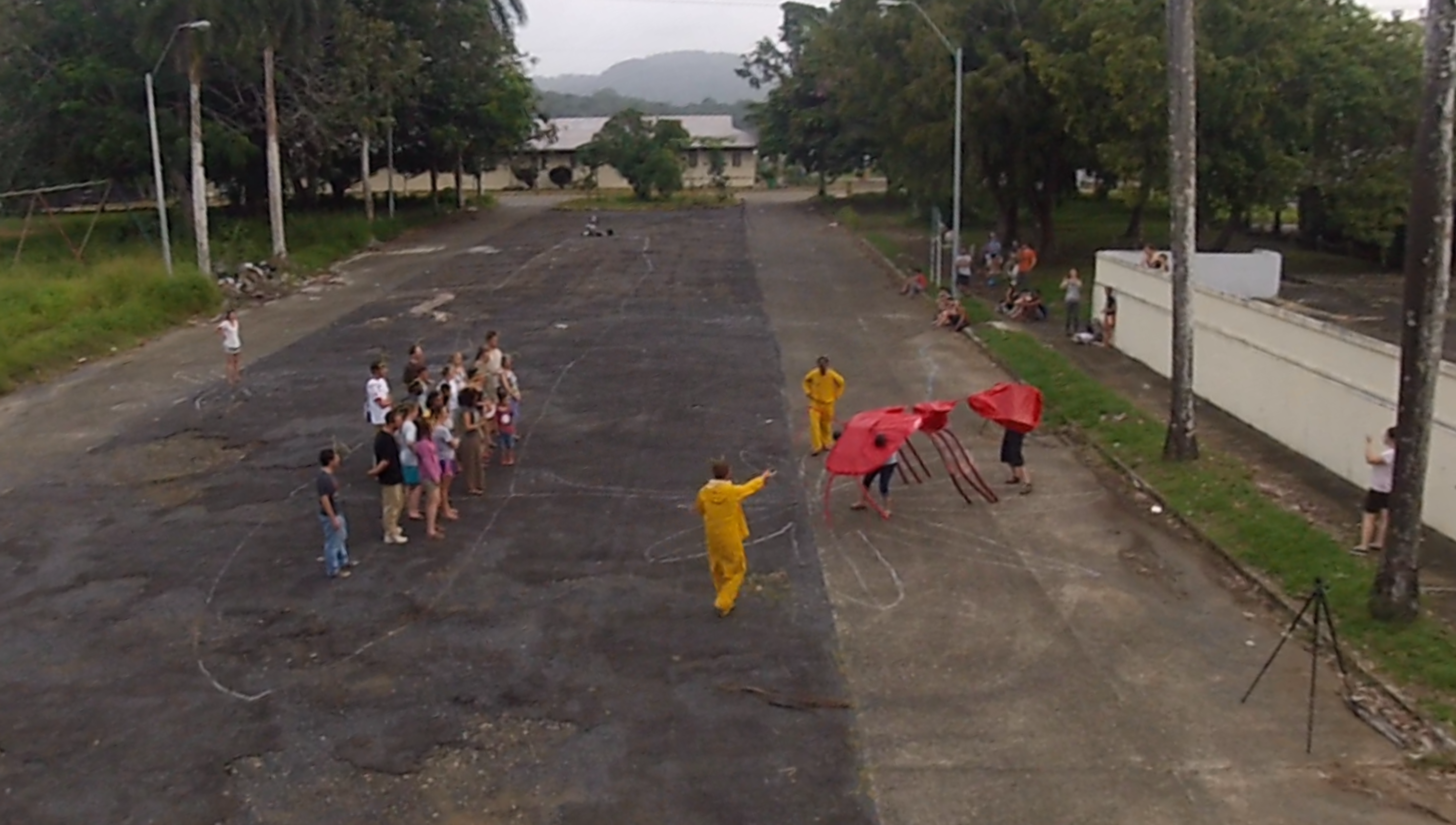 In wrapping up my 2013 field season, I challenged my partner Peter Marting to express his research as a performative love story. In just a week, we managed to put together a 30-minute play featuring dozens of actors and audience collaborators, costumes, and an 18 foot long Leaf Cutter ant puppet.