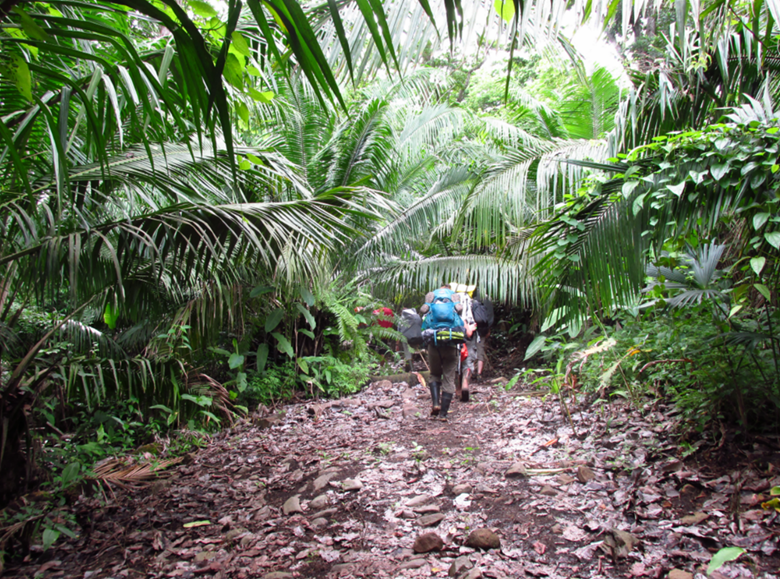 These suburbs, a former US army base, are where the entrance to the historic Camino de Cruces trail has been hidden. Our previous week’s scouting found it behind house 636 in a little subdivision. This is where we encounter the first main obstacle. Within the week, the entrance to the jungle has been locked. The people of house 636 let us setup a lunch camp in their backyard while Ummat and May hunt around for ways around or people to help us. More than an hour goes by and things are looking stupidly grim, how have we marched across a city to just be locked off from the forest? Luckily this fantastic duo finally found a person in this sleepy burb with more info. They told us there is a guy trying to make an illegal land-grab on the Camino De Cruce’s trail and he does mean things like put his on locks on public property. This nice resident then gave us a hacksaw and told us we should open it back up. This is when the Hiking Hack took on a more literal meaning than we would have thought.