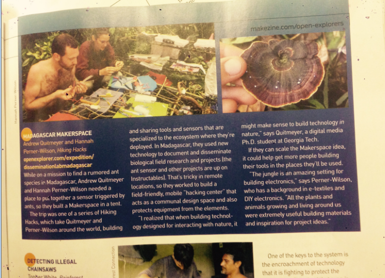 I will be starring in a new Television series created for Discovery Networks called “Hacking the Wild.” It’s based loosely on my work during “Hiking Hacks” where I build interactive electronics entirely in the wilderness. The show airs on the Science Channel in the US start February 15, 2017. This first season features work inspired by my PhD research into Digital Naturalism put into play as “survival” tools for building technology in the wilderness. We spent 6 months filming the show in different locations from tropical islands, to swamps, to glaciers!
